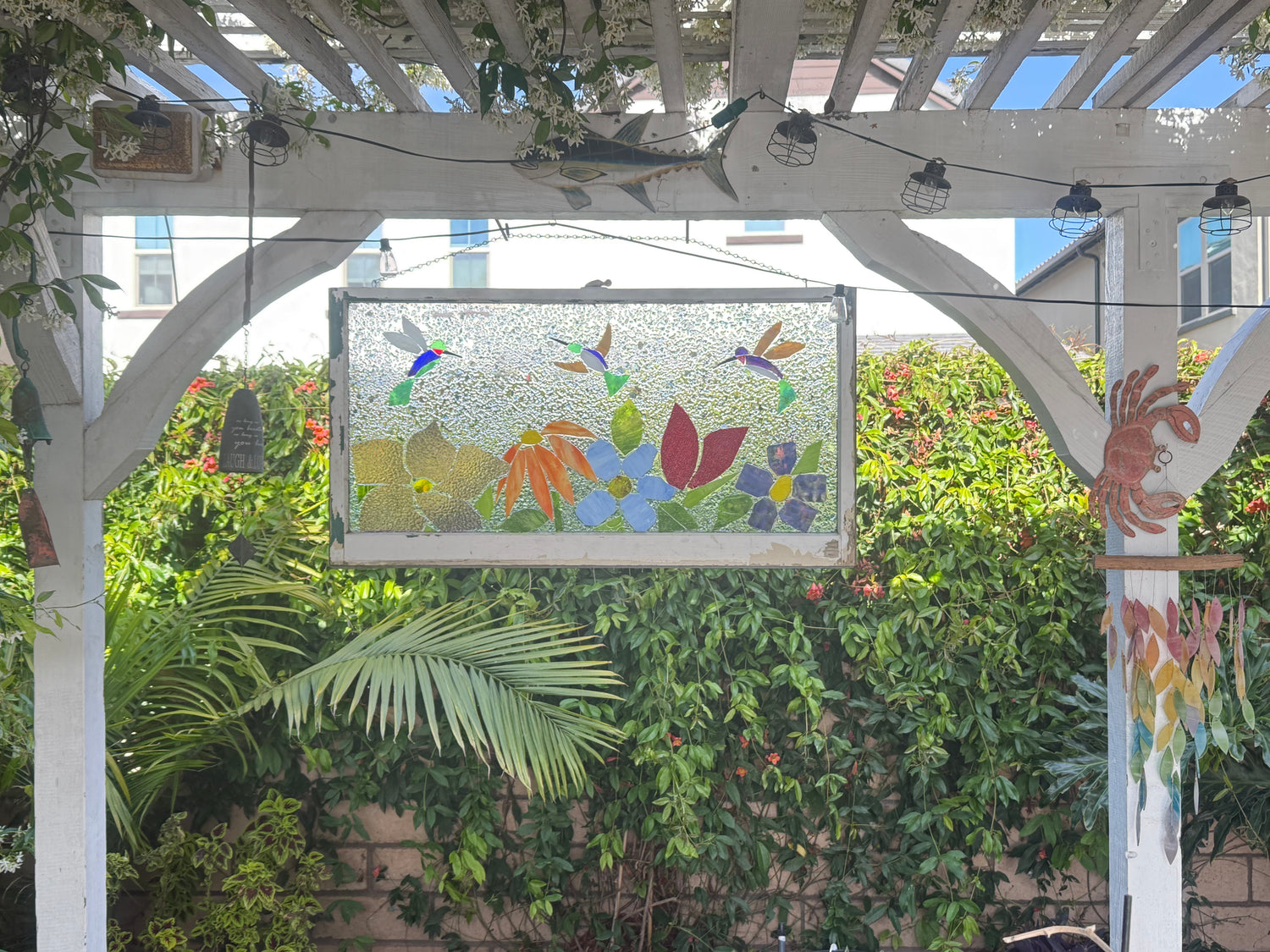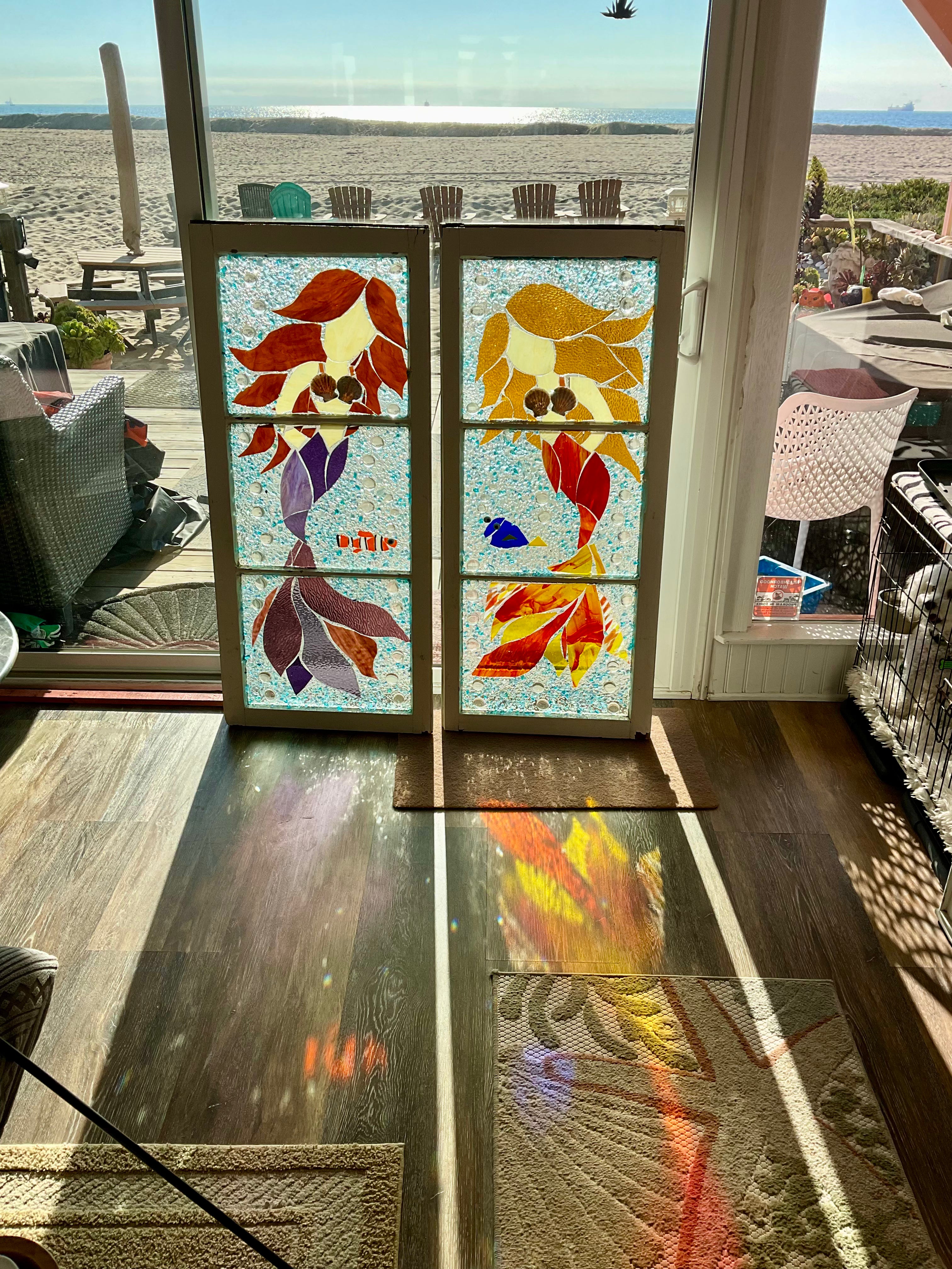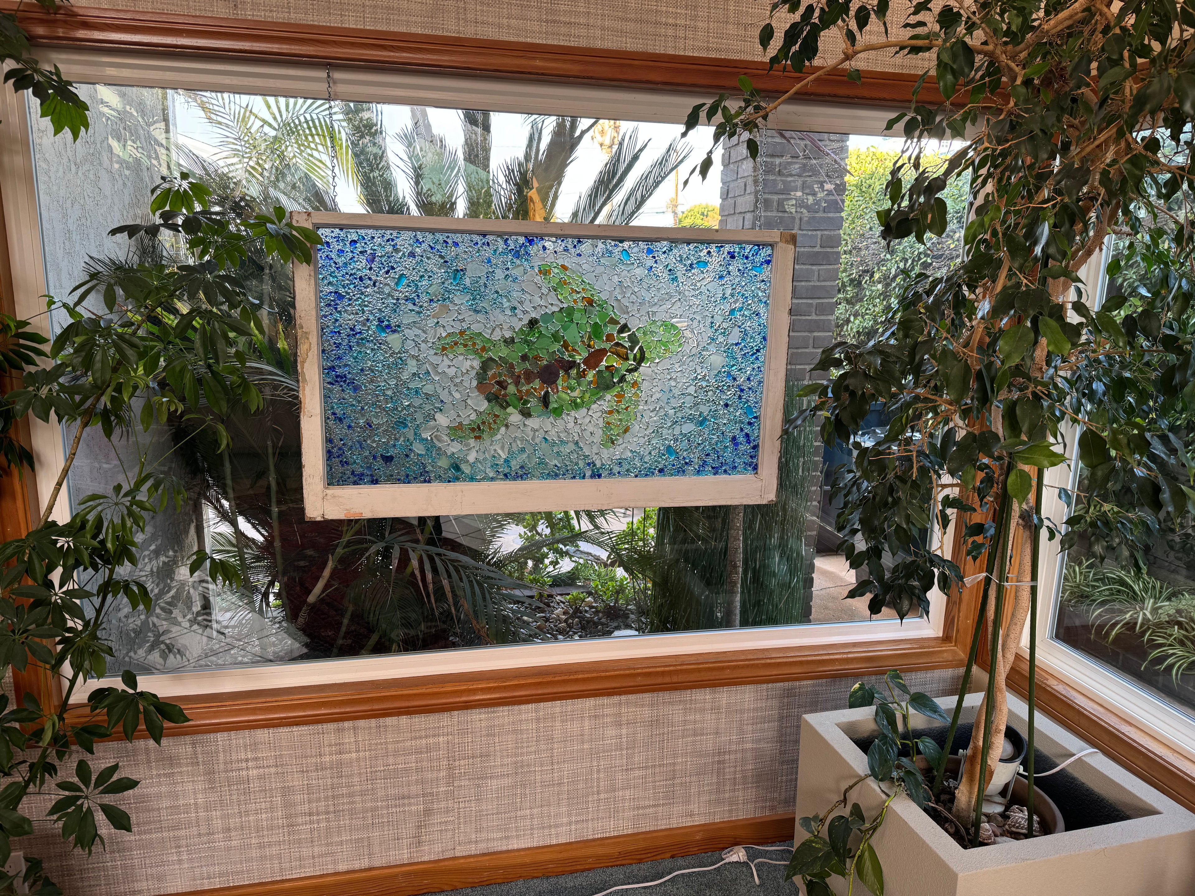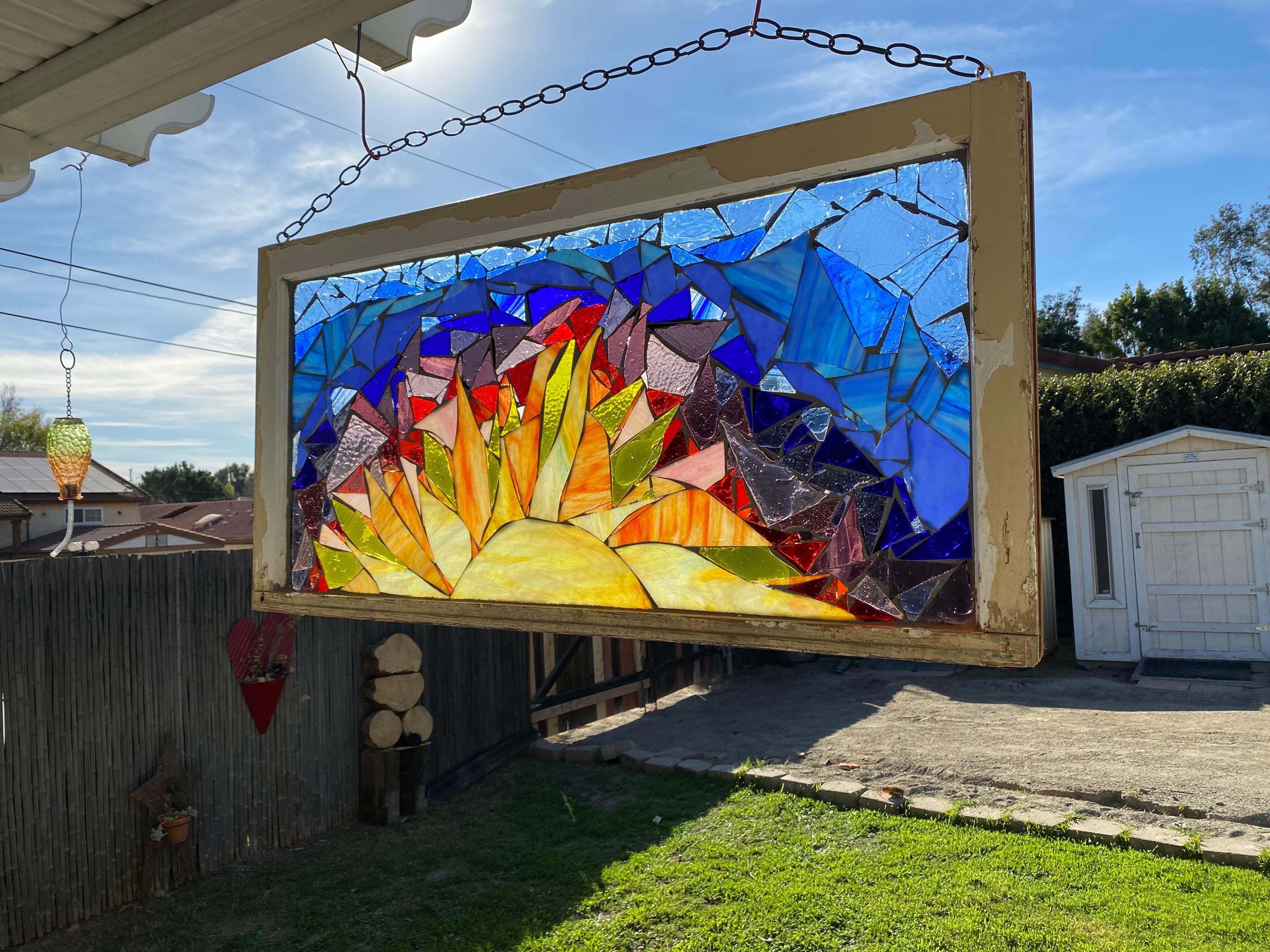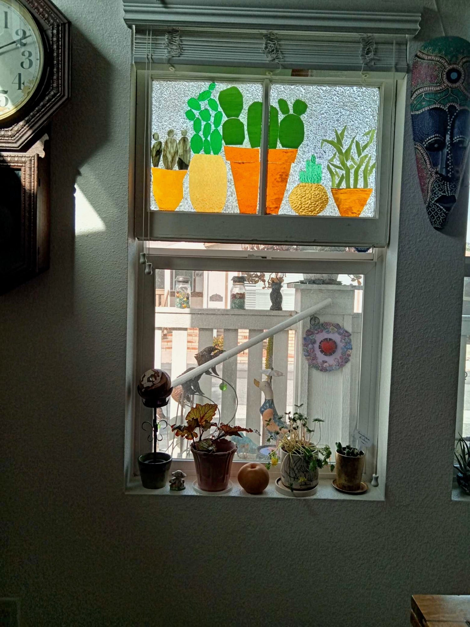 "Christy, Gary hung the beautiful cactus stained glass you gave me this morning. Wow it is so beautiful. Gary really loves it . Thank you my friend for such a beautiful gift that was made by a beautiful lady. We are so honored with two of your beautiful art pieces to add beauty to our home. Love you." - Joan