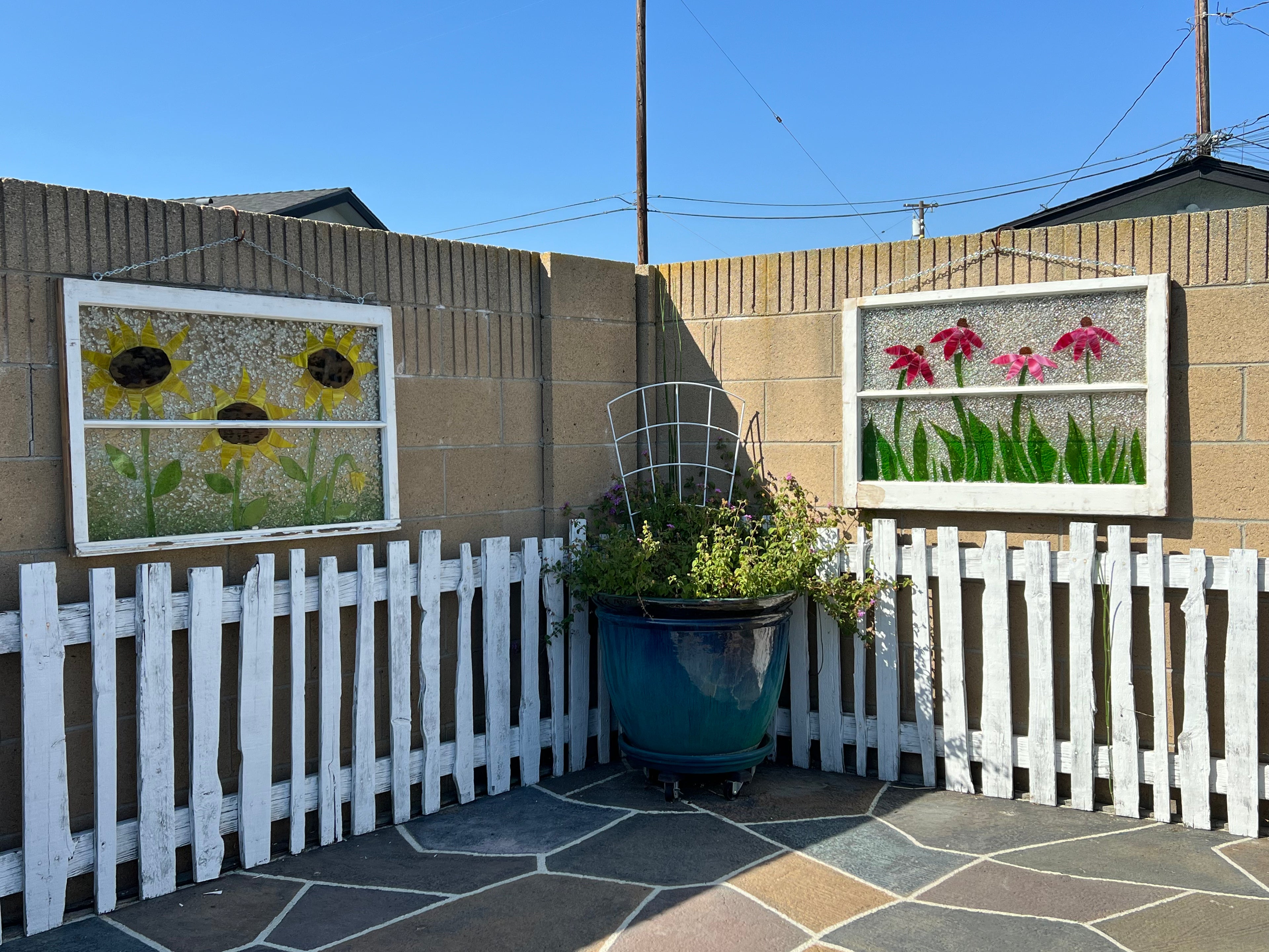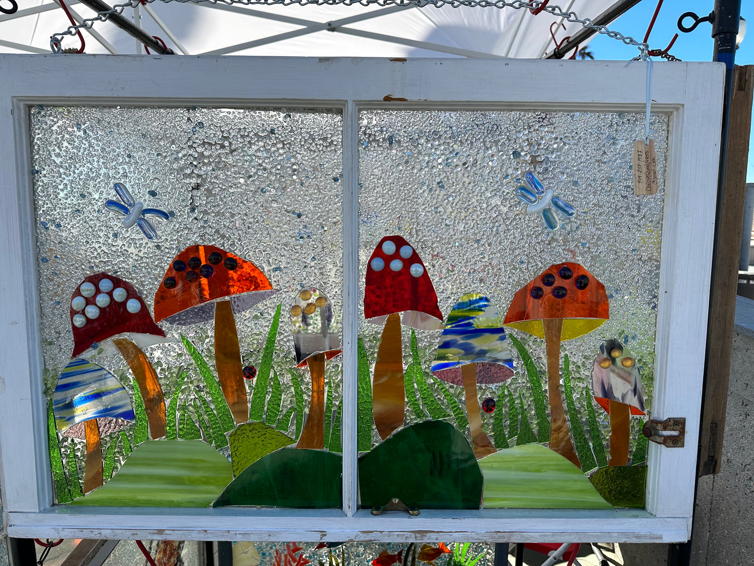 "Hi there - been meaning to share these! The pink & purple is my best friends house, it was made for her front window & she loves it. The mushrooms look perfect in our garden & I love it. Thank you 💚 "